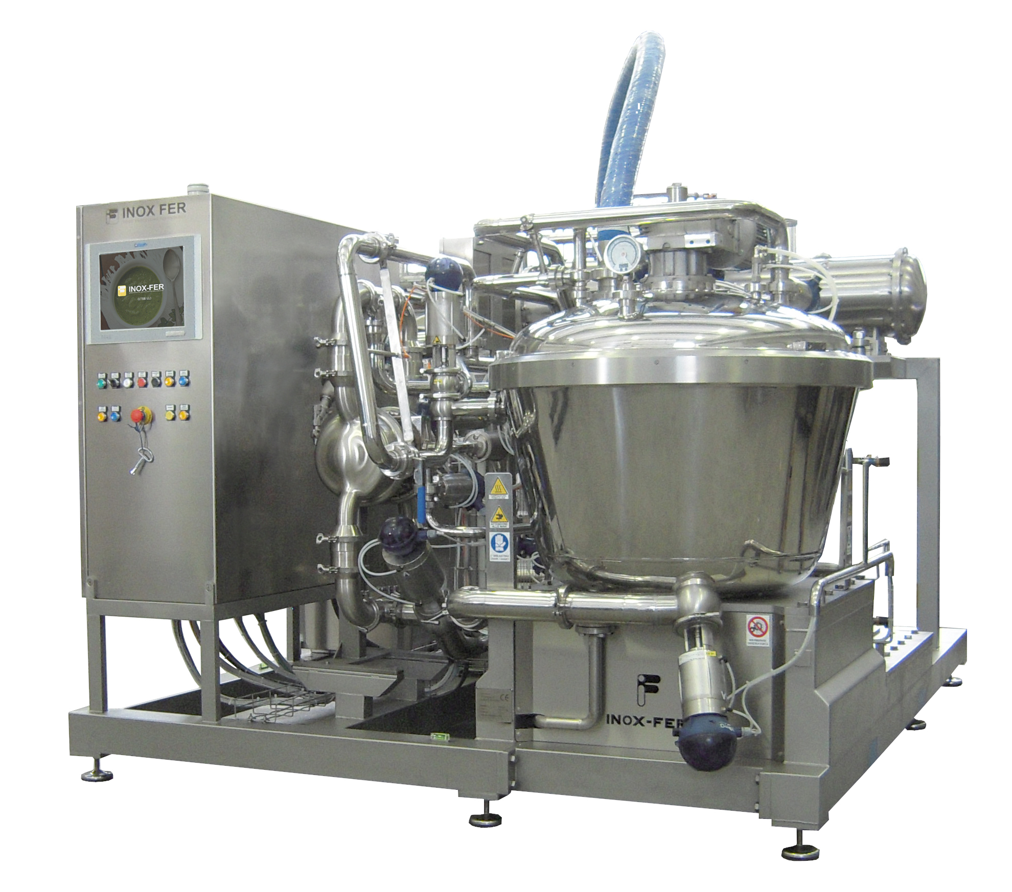 Le similitudini nella lavorazione di frutta e pomodoro fresco (ricevimento del prodotto, lavaggio e cernita, triturazione, preriscaldamento, raffinazione, concentrazione, stoccaggio, pastorizzazione) hanno consentito a Inox Fer di realizzare una linea di produzione estremamente versatile. Capace di trattare diverse tipologie di prodotti, è ottimale per realtà produttive di piccole e medie dimensioni. Da qualsiasi frutto si parta per la realizzazione di salse, nettari e confetture, la linea permette di sfruttare i medesimi passaggi. In tal modo i clienti con una produzione diversificata non sono costretti ad acquistare più macchine. La prima fase è quella di ricevimento e lavaggio, dove il prodotto è scaricato nella vasca per essere lavato e poi trasferito nella zona di cernita per cascata, dove subisce un processo di triturazione. Il riscaldamento è una fase delicata, tanto che in base al prodotto da ottenere sarà utilizzata una lavorazione hot break oppure cold break. Nella fase di raffinamento il prodotto è sminuzzato fino a renderlo della consistenza giusta per il prodotto finale da ottenere, per poi essere separato dagli scarti destinati allo smaltimento. Al momento dello stoccaggio, il succo fin qui ottenuto è convogliato in un serbatoio che alimenta a ciclo continuo l’evaporatore. L’evaporazione è fondamentale ai fini del prodotto da ottenere, e in base alla densità finale richiesta si può scegliere di concentrare il prodotto utilizzando una bolla o un concentratore a triplo effetto con evaporatori variabili. Così concentrati, la salsa, il sugo o il nettare sono canalizzati in un secondo serbatoio di stoccaggio, prima di essere pastorizzati.
