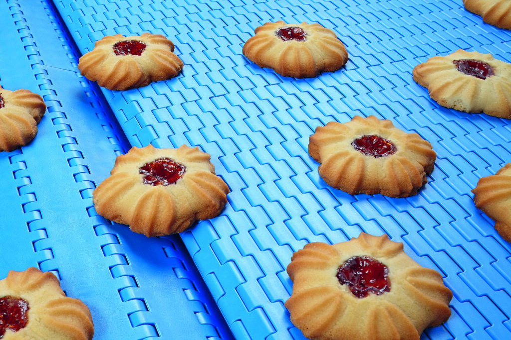 Il nastro modulare Siegling Prolink S13 di Forbo è la soluzione ideale per il trasporto e il trasferimento di prodotti di piccole dimensioni quali biscotti, ravioli, pasta, cioccolatini, hamburger, cialde e capsule di caffè eccetera. Questo nastro modulare, detto anche “Micropitch”, grazie al passo ridotto di soli 8 mm e al suo particolare design è in grado di ruotare su penne fisse in plastica e in acciaio fino a un raggio minimo di soli 3 mm. La luce di passaggio tra i vari nastri di un impianto, così come tra nastro e macchina da alimentare, è ridotta al minimo, garantendo così un trasporto delicato e stabile. Il suo utilizzo è consigliato anche nella fase di confezionamento dove è necessario mantenere in posizione anche i prodotti più instabili da trasportare, come per esempio bottiglie in plastica o vetro dalla base ridotta. Ha una capacità di carico fino a 400 kg per metro di larghezza ed è realizzabile in diversi materiali; può lavorare entro un ampio range di temperature che spazia da -45 a +120°C, quindi dal trasporto di prodotti congelati fino all’uscita di forni ad alte temperature. Il perno, realizzato in materiale anti-usura, garantisce la durata del nastro nel tempo anche in presenza di prodotti abrasivi quali farina, zucchero, sale, spezie. A completamento di questo nastro modulare, le superfici flat-top liscia (FLT) e piramide negativa (NPY) nei colori blu e bianco che lo rendono visibile al controllo ottico in ogni applicazione.