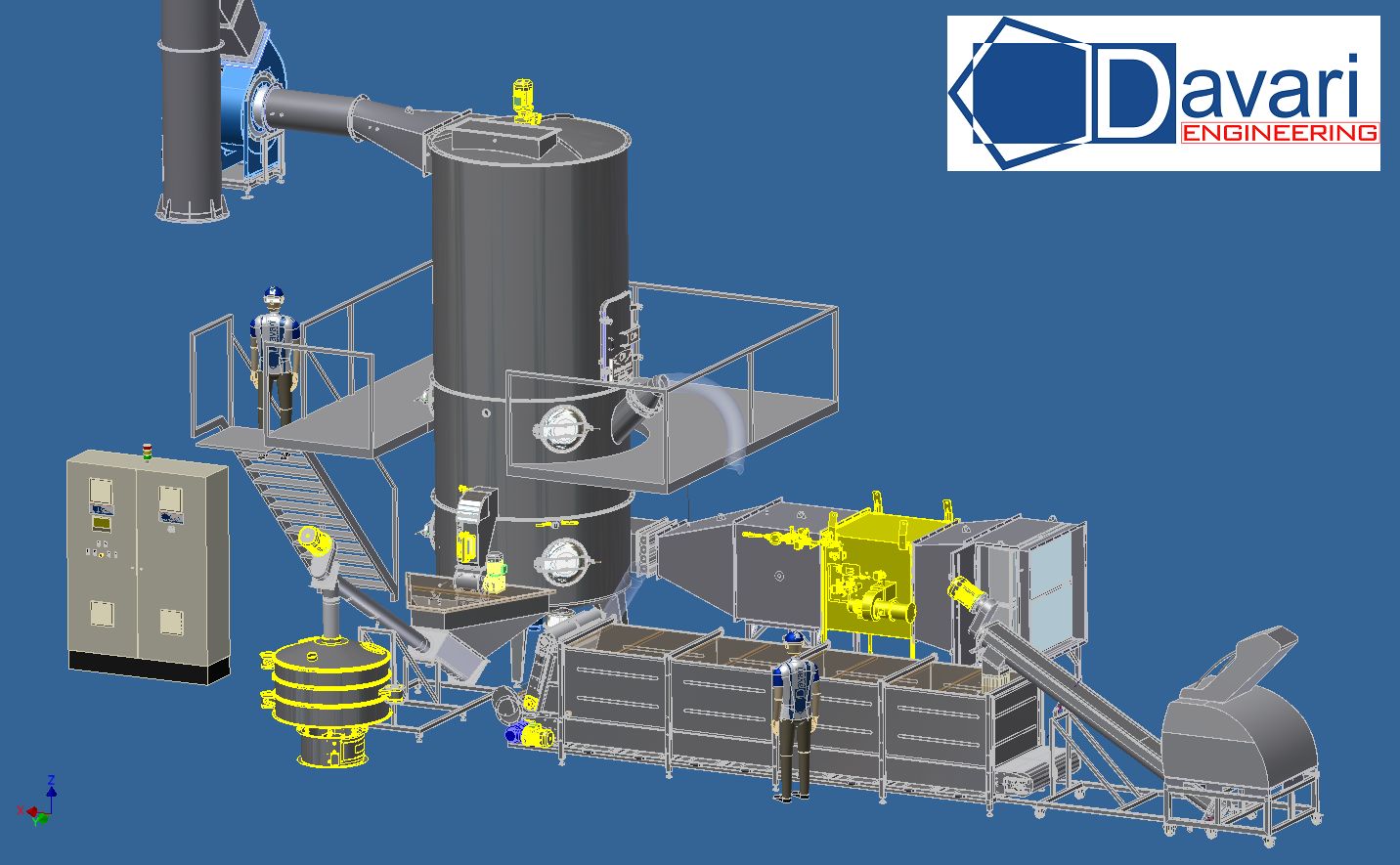 Fluidy Dry è un essiccatoio verticale a letto fluido studiato e realizzato da Davari Engineering. L’aria calda e deumidificata attraversa il prodotto tenendolo in sospensione, e nel frattempo un mescolatore lo movimenta rendendolo il più omogeneo possibile.