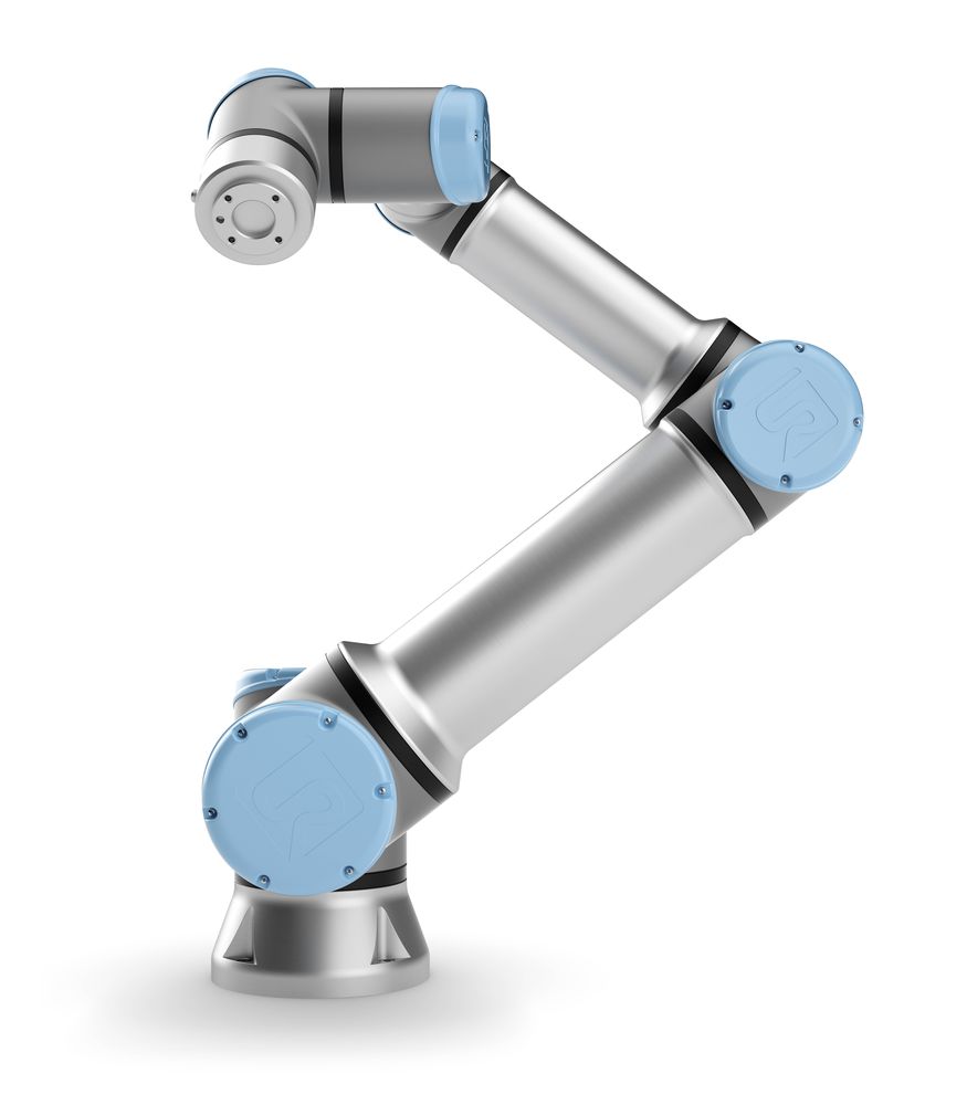 Per quest’ultima fase, in particolare, le soluzioni collaborative più efficienti sono due: UR10e e UR16e (in foto). Il primo è un robot con 10 kg di payload, sbraccio di 1300 mm e ripetibilità di +/-0,03 mm. Il secondo, ultimo arrivato in gamma, ha la più alta capacità di carico del segmento di reach ed è in grado di automatizzare attività particolarmente gravose di packaging.