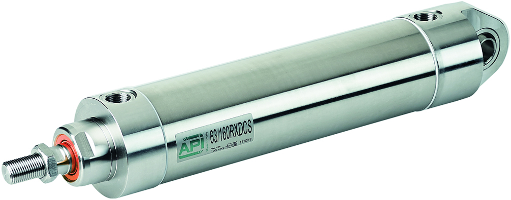 API dispone di una gamma completa di componenti pneumatici d’acciaio inox tra cui i cilindri tondi serie RXD. Dotati di alesaggi da 32 a 63 mm, questi attuatori hanno un design essenziale studiato per impedire l’accumulo di impurità.