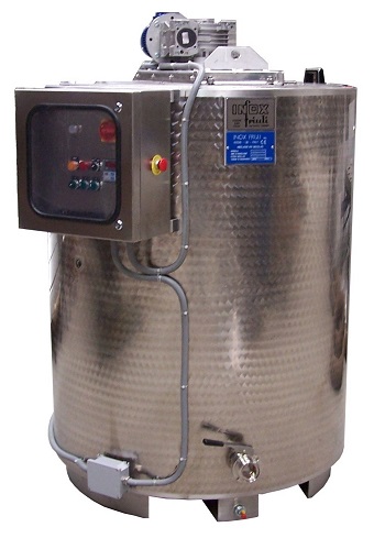 Inox Friuli produce miscelatori dotati di un serbatoio che consente di mantenere costante la temperatura e la consistenza della massa del prodotto. Particolarmente adatti al processo di miscelazione in linea, hanno una capacità da 200 a 40.000 kg e sono in grado di mantenere costante la temperatura del prodotto tramite la camera esterna riscaldante.