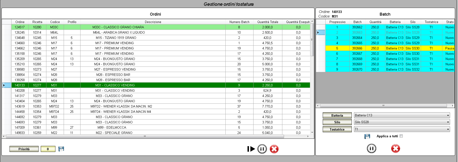 Oltre al tradizionale livello di automazione, Brambati ha sviluppato un’interfaccia in grado di ricevere gli ordini di produzione, le giacenze di caffè verde corrente e altri dati dai livelli superiori come ERP, SAP, MES ed erogare questi dati alle diverse aree e macchine (torrefattore, macinatori eccetera). In questo modo, la richiesta di inserimento dati all’operatore si riduce al minimo.