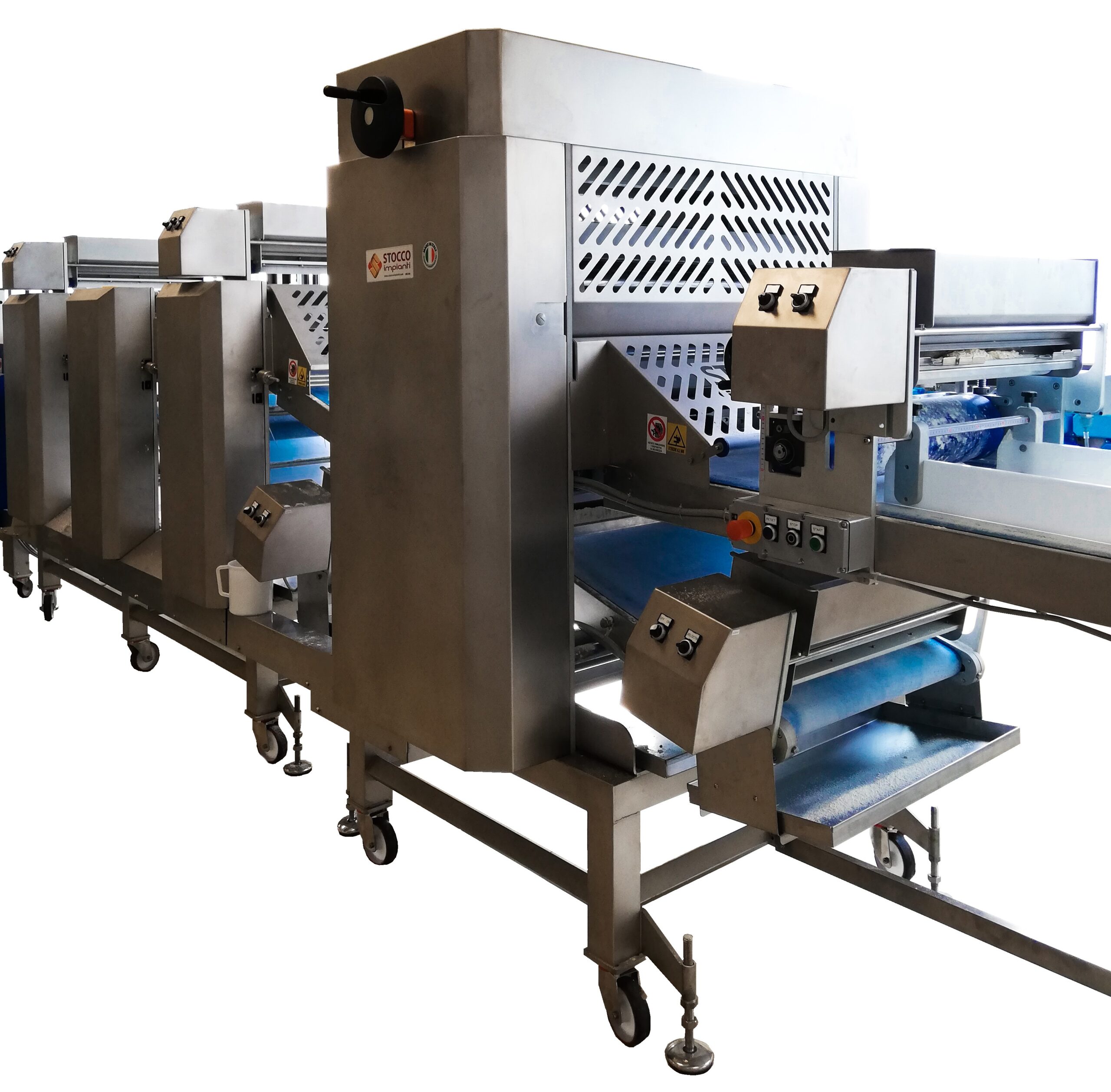 Le linee di laminazione Stocco si compongono di più macchine indipendenti: estrusori, multirullo, rullo equalizzatore, calibratori multipli, sfarinatori, affaldatori, cross roller, tavoli da lavoro, sistemi d’integliamento.