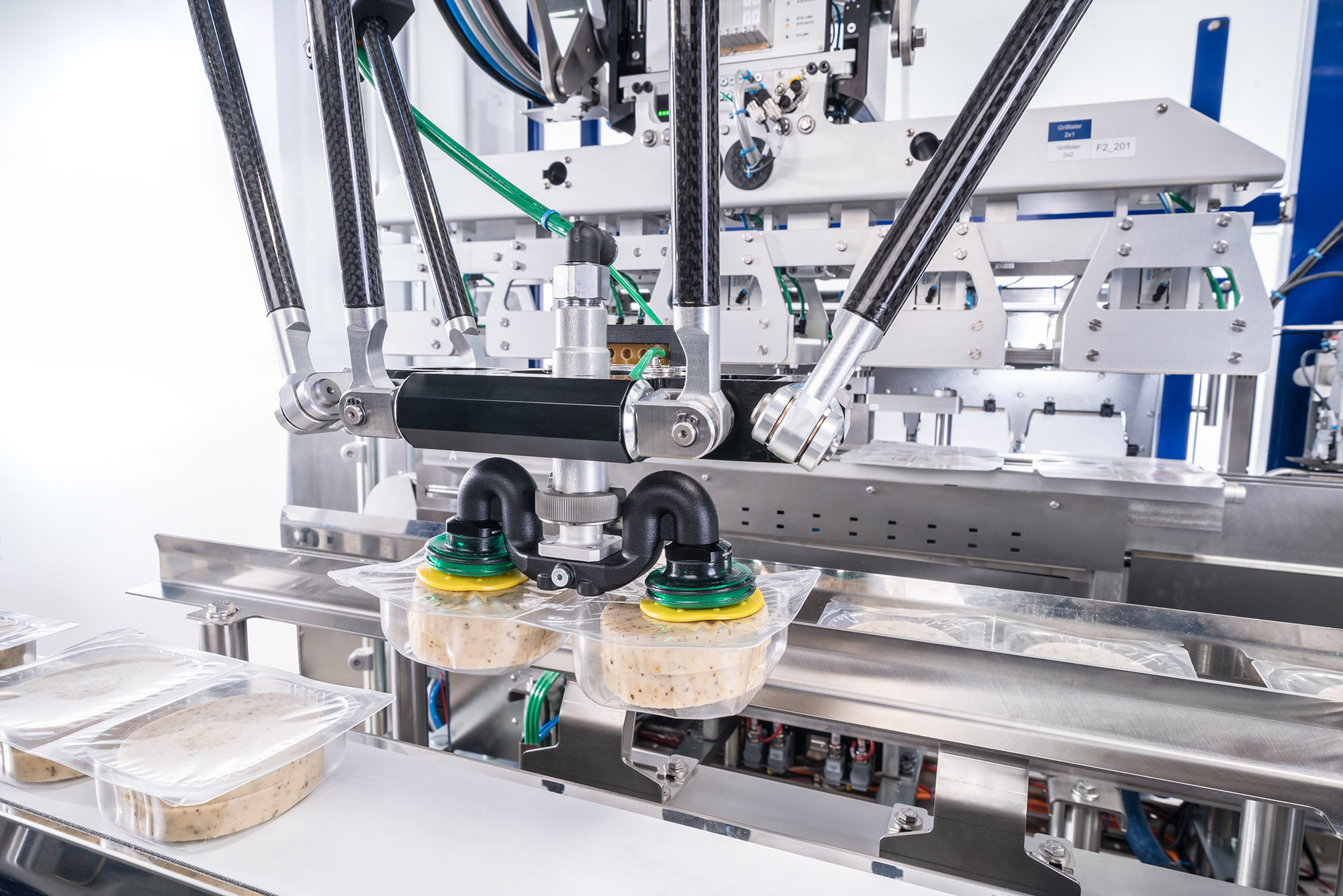In passato i prodotti venivano confezionati su una sola linea continua, mentre ora il procedimento delle fascette è stato staccato. I robot, raggruppato i formaggi da grigliare, li prelevano e li confezionano nelle fascette di cartone, utilizzando un utensile appositamente sviluppato dalla Schubert. “Grazie all’integrazione di diversi sistemi di trasporto e ai robot, la macchina si è rivelata un investimento particolarmente affidabile e performante” dice Murat Colak, area sales manager della Schubert.
