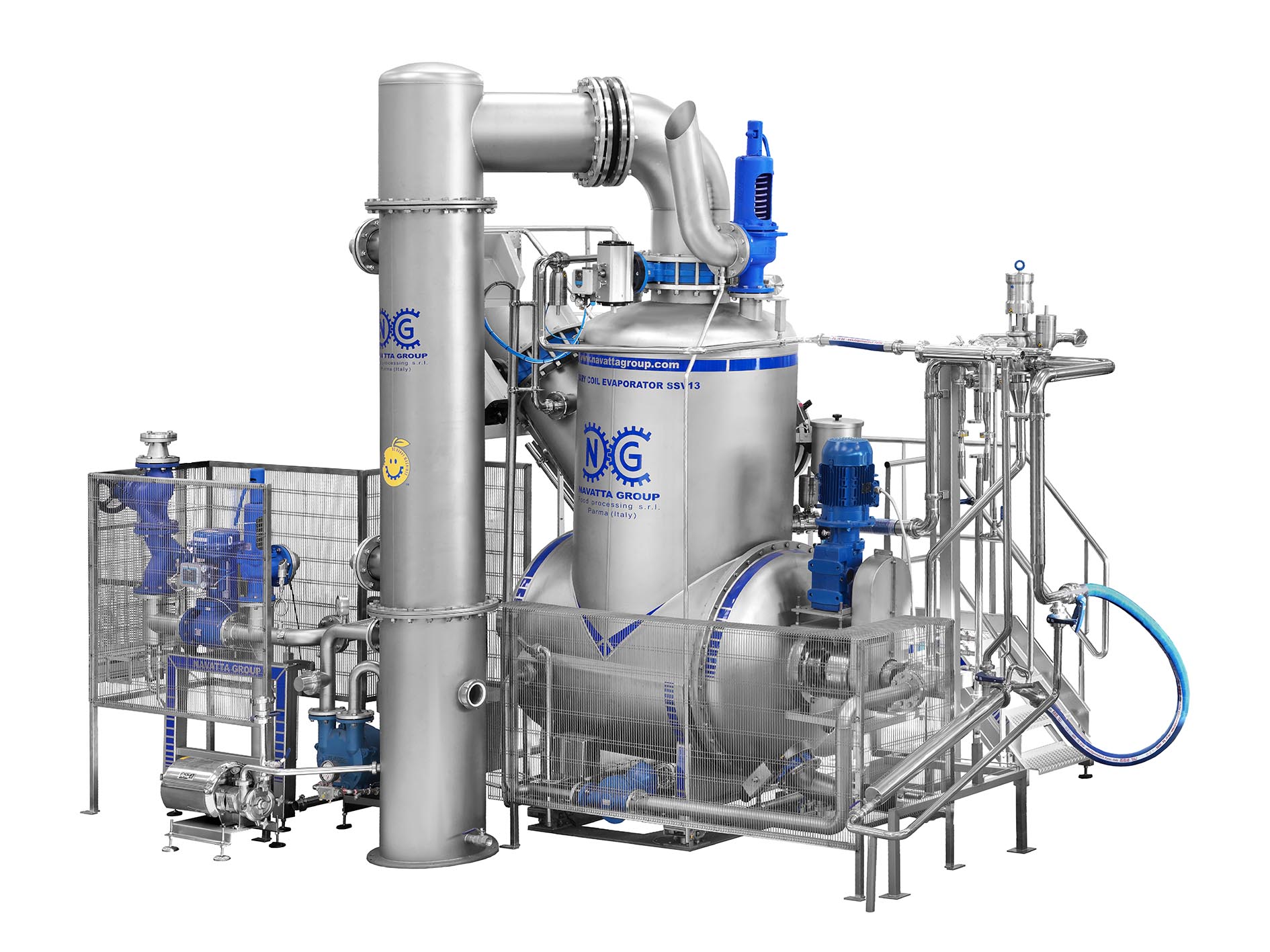 Il miscelatore/evaporatore Navatta è costituito da un recipiente che alloggia uno scambiatore di calore a serpentino rotante, con un’intercapedine esterna flussata con acqua calda o vapore (optional).