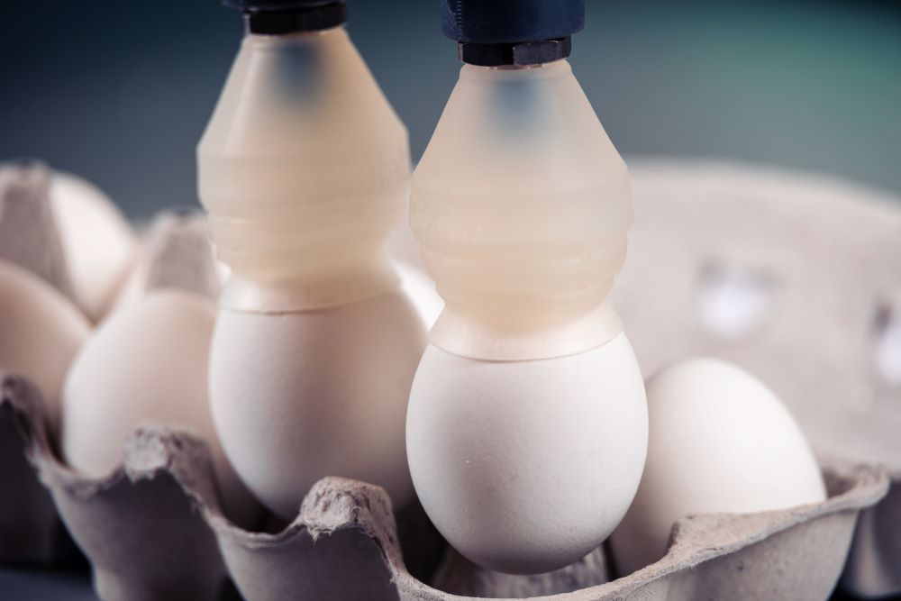 Con la nuova ventosa per uova ECX36 la manipolazione delle uova diventa più sicura. Quando si movimentano le uova è indispensabile avere una presa sicura per evitare di farle cadere.