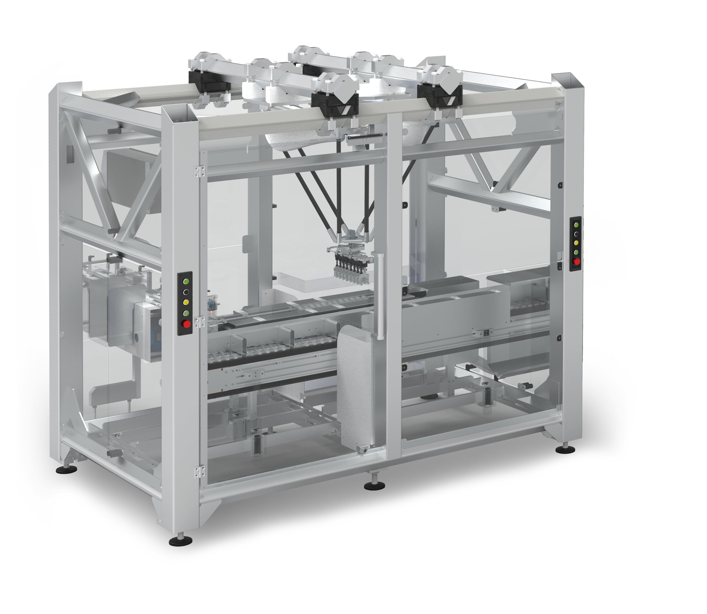 Il sistema è in grado di distinguere i diversi colori del flowpack e riconosce un film trasparente o un imballo dello stesso colore della superficie su cui avanza. Comunica al robot a tre/quattro assi (3+1 rotazione al polso) quali prodotti prelevare e quali scartare. Il robot è completamente sviluppato e prodotto internamente.