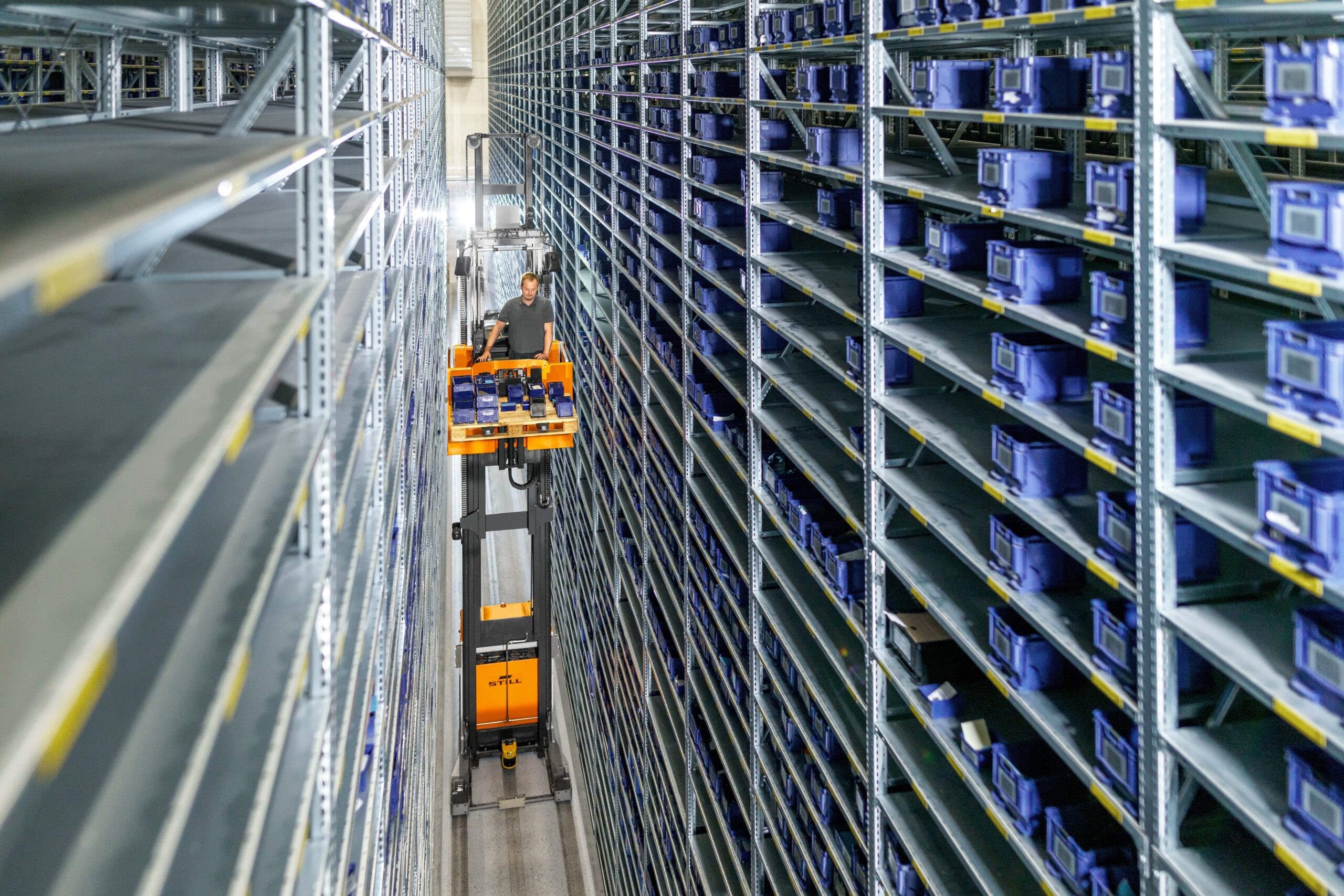 Il commissionatore verticale Still PXV è equipaggiabile con batterie da 24/48 V al piombo o agli ioni di litio per velocità fino a 13 km/h. L’altezza di picking va da 7,8 a 14,5 m, la capacità di carico19 da 1000 a 1200 kg.