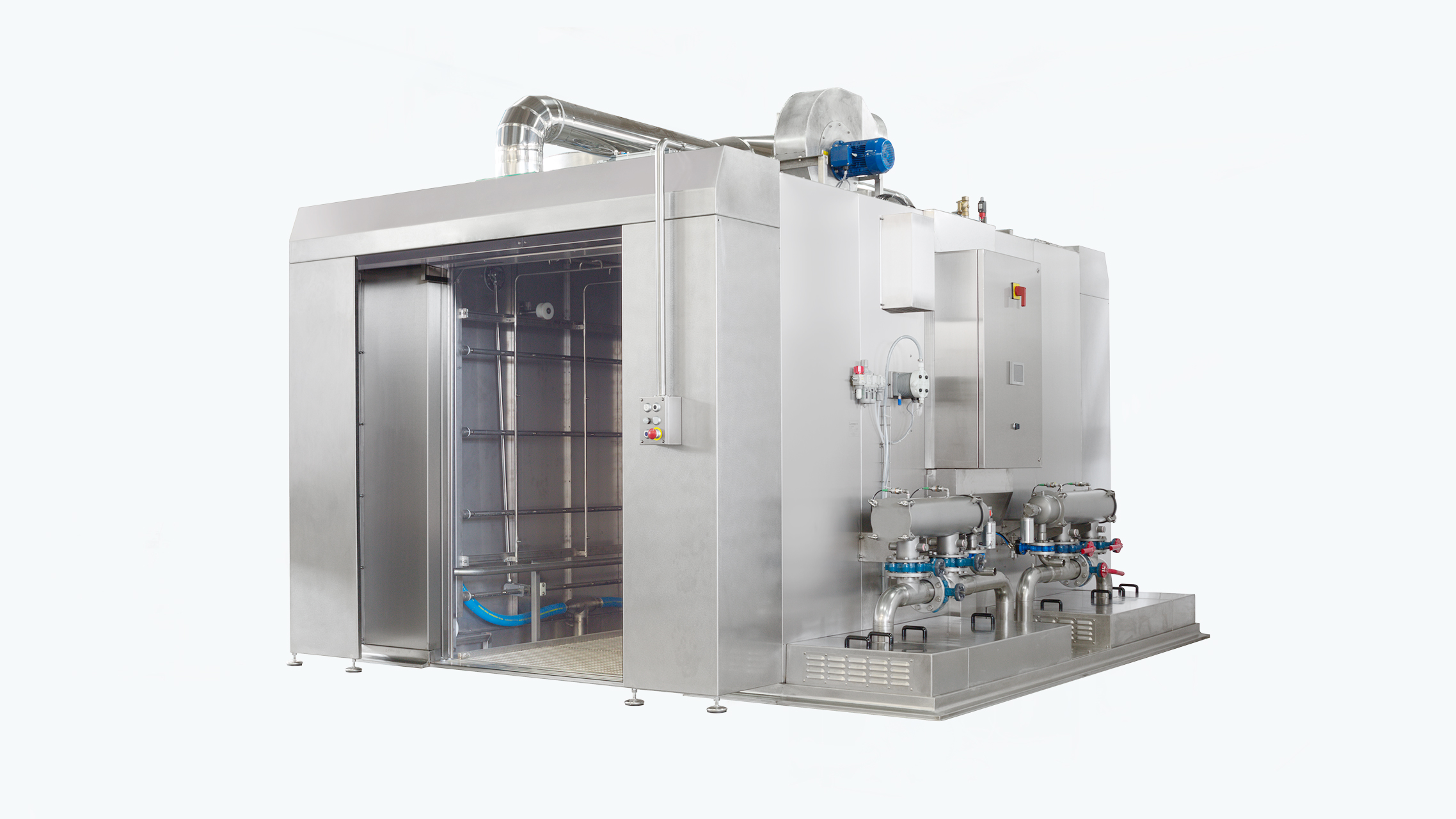 Le macchine Inox Meccanica possono essere “a cabina” (con una o due porte), per lavare attrezzature differenti o di grandi dimensioni, oppure “a tunnel”, quando il lavaggio riguarda numeri elevati di attrezzature simili che vengono trasportate mediante un nastro o una catenaria all’interno del tunnel stesso.