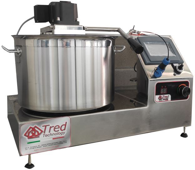 La continua ricerca in innovazione e tecnologia ha portato Tred Technology alla realizzazione di due nuovi impianti che si affiancano alla linea già esistente dedicata alla trasformazione dell’ortofrutta e del pomodoro: Cook-mix 10 e Policook. Cook-mix 10 da banco (in foto) ha un sistema di riscaldamento a induzione che garantisce risparmio energetico e rapidità nei processi di lavorazione.