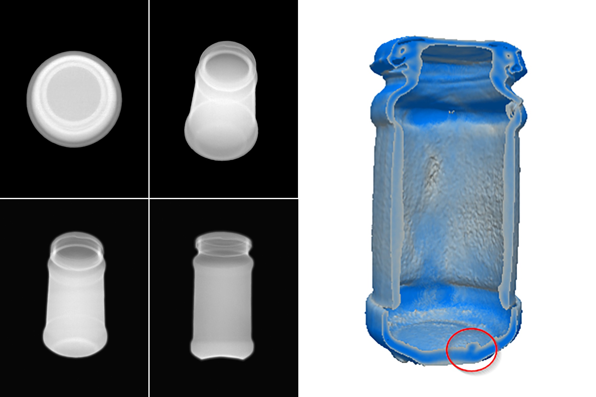 Questo consente di rilevare corpi estranei indipendentemente da forma, orientamento o posizione, anche in zone critiche difficilmente ispezionabili con i raggi X convenzionali come, per esempio, sotto il tappo o alla base di un contenitore. Tra i contaminanti rilevabili vi sono schegge di vetro in contenitori di vetro, fili metallici, guarnizioni di gomma o componenti con densità simile al prodotto.