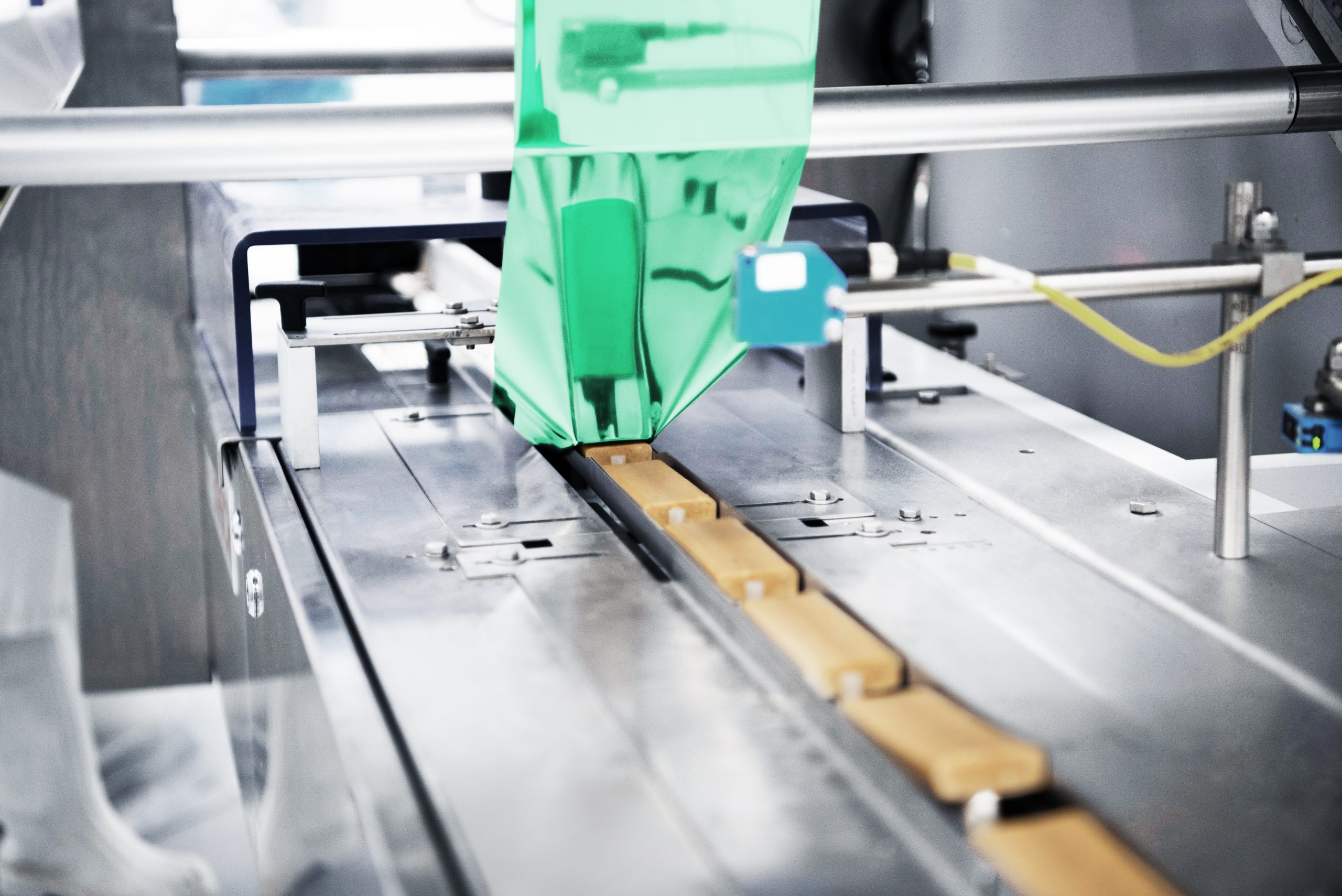 Dolciumi come barrette di cioccolato, biscotti o prodotti da forno vengono solitamente confezionati in film plastici. Grazie alle più recenti ricerche sui materiali, oggi sono disponibili carte composte fino al 90% da fibre naturali, riciclabili, in grado di proteggere efficacemente il prodotto e al tempo stesso molto più rispettose dell’ambiente. Anche Mondelēz International utilizza questo approccio per le sue tavolette di cioccolato Cadbury. La forma particolare delle tavolette – più larga e molto piatta – costituisce una sfida ulteriore. Con paper-ON-form è stata sviluppata una soluzione per macchine esistenti capace di gestire numerosi formati, senza compromessi sui tassi di produzione.