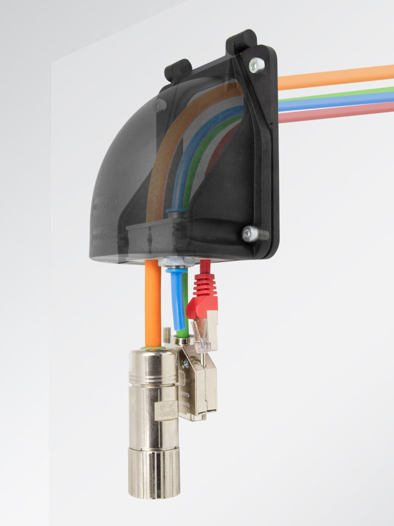 La gamma di flange di icotek viene ampliata con una nuova variante di prodotto in due versioni. Con la nuova flangia è possibile far passare i cavi a 90° con un raggio di curvatura molto ampio. La nuova flangia KEL-FW B è ideale per i cavi con connettori (ø massimo 35 mm), ma è possibile…